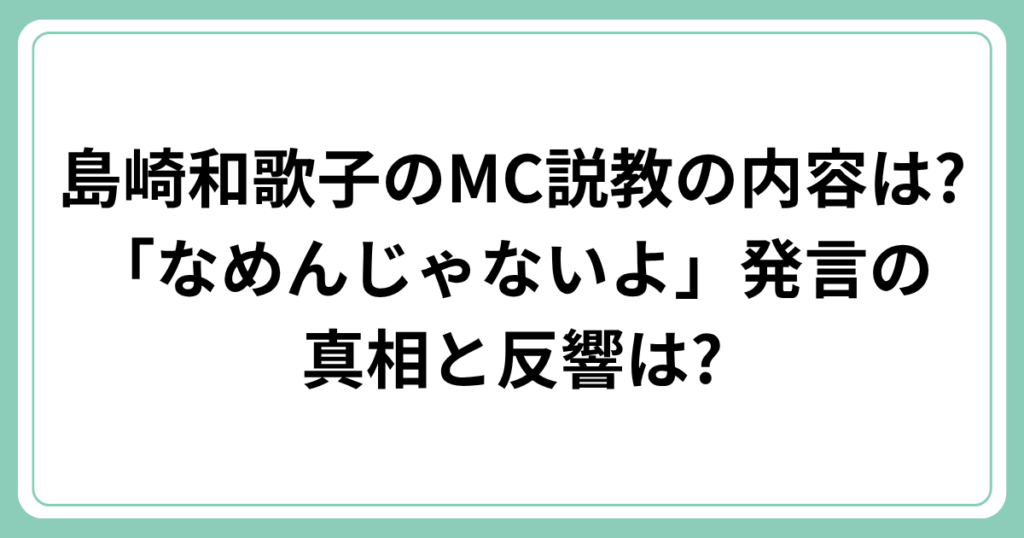 島崎和歌子のMC説教の内容は?「なめんじゃないよ」発言の真相と反響は?