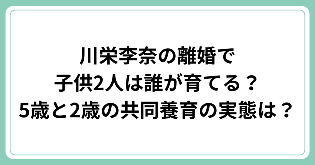 2026年4月10日、元AKB48メンバーで女優の川栄李奈さんが、俳優の廣瀬智紀さんとの離婚を発表しました。 2人の間には5歳と2歳の子供がいることから、離婚後の子育てはどうなるのか注目が集まっています。 この記事では、川栄李奈さんの離婚と子供たちの今後... -