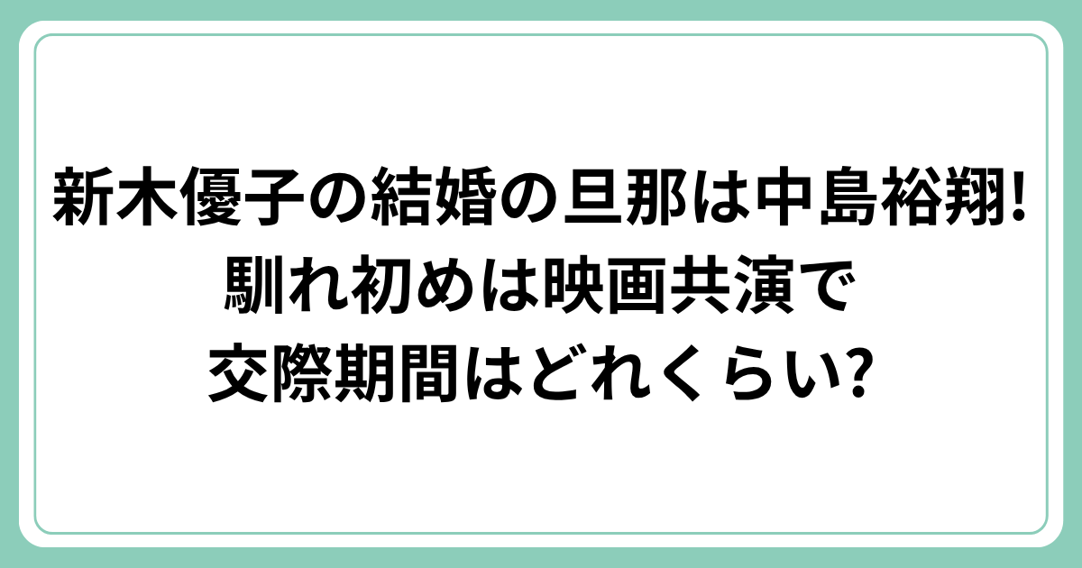 新木優子さんの結婚相手の旦那さんは、俳優の中島裕翔さんです!